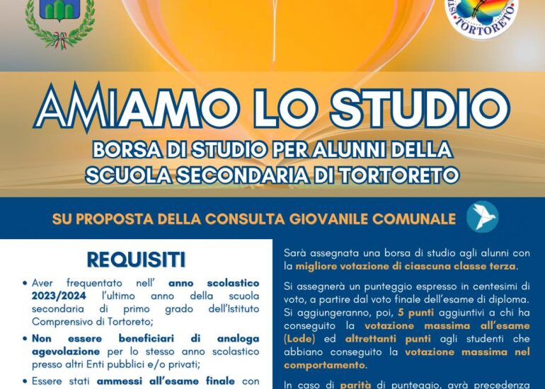 Borsa di studio per gli alunni della Scuola Secondaria dell’Istituto Comprensivo Tortoreto L’Amministrazione...